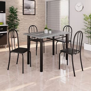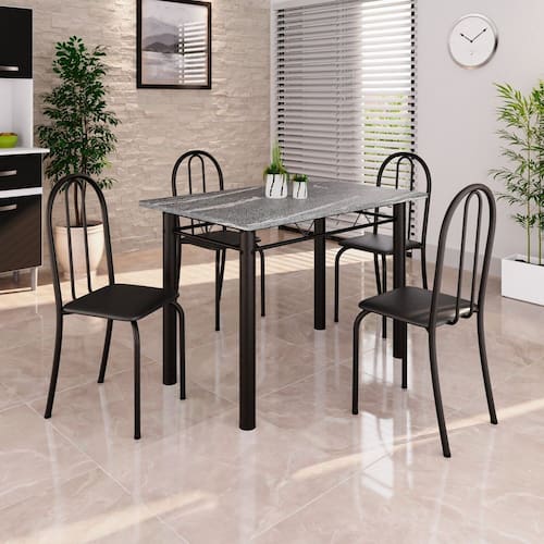 Quer deixar sua casa completa e prática? Uma dica bacana de como transformar o seu lar, deixando-o mais receptivo e bonito? Então você precisa de móveis indispensáveis para deixar seu lar muito mais aconchegante, receptivo e sempre disponível para receber a visita de amigos, familiares e convidados. Você vai se apaixonar por este incrível e moderno Conjunto de Mesa com 4 Cadeiras ANE B. Ideal para cozinha, ele é a melhor opção para completar o espaço que você desejar. Aproveite!! Medida da Mesa (A x L x P): 75,8 cm x 100 cm x 60 cm Peso da Mesa: 42,34 kg Mesa suporta até: 10.0000 Acabamento da Cadeira/Banco: Pintura Texturizada Acabamento da Mesa: Pintura Texturizada Ambiente Principal: Cozinha Cadeira/Banco estofada: Somente Assento Estofado Cadeira/Banco Estofada: Somente Assento Estofado Cadeira/Banco suporta até: 120.0000 codigo_ean: 7900288049186 Complexidade da Montagem: Baixa: pode ser montado por uma pessoa sozinha Cor: Preto Cor do Produto: Preto Cor Secundária: Cinza De Canto (Canto Alemão): Não Escala de Brilho: Semi-Brilho Espessura do Tampo: 1,5 mm Estrutura do Assento: MDP Formato do Tampo: Retangular Itens Inclusos: 1 Mesa, 4 Cadeiras, 1 Kit Ferragens e 1 Manual de Montagem Linha ou Coleção: Ane B Manual de Montagem e Instalação: https://product-hub-prd.madeiramadeira.com.br/975520/documents/ff30b94a-0991-4f00-9fa3-e47f27f82bc92645257352817375705415518.pdf Marca: Soma Móveis Material da Base da Mesa: Aço Material da Estrutura da Cadeira: Aço Material do Tampo: Granito Medida da Cadeira/Banco (A x L x P): 89 cm x 37 cm x 42 cm Medida do Tampo (L x C x E): 60 cm x 100 cm x 1,5 cm Mesa Extensível: Não Necessita Montagem: Sim Origem do Produto: Nacional Peso da Cadeira/Banco: 3 kg Possui Apoio Para os Pés: Não Quantidade de Cadeiras: 4 Quantidade de Lugares: 04 Recomendações de Uso, Manutenção e Limpeza: Não permitir que molhe os pés da base, usar um pano de tecido macio e seco, evitar detergentes, alvejantes e produtos químicos de limpeza; no tampo usar tecido macio levemente umedecido. Sistema de Montagem: Parafusos