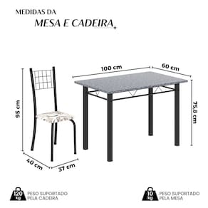 Medida da Mesa (A x L x P): 75,8 cm x 100 cm x 60 cm