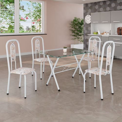 Quer deixar sua casa completa e prática? Uma dica bacana de como transformar o seu lar, deixando-o mais receptivo e bonito? Então você precisa de móveis indispensáveis para deixar seu lar muito mais aconchegante, receptivo e sempre disponível para receber a visita de amigos, familiares e convidados. Você vai se apaixonar por este incrível e moderno Conjunto de Mesa com 4 Cadeiras. Ideal para cozinha, ele é a melhor opção para completar o espaço que você desejar. Aproveite!! Medida da Mesa (A x L x P): 75,8 cm x 100 cm x 60 cm Peso da Mesa: 12,92 kg Mesa suporta até: 10.0000 Acabamento da Cadeira/Banco: Pintura Texturizada Acabamento da Mesa: Pintura Texturizada Ambiente Principal: Cozinha Cadeira/Banco Estofada: Somente Assento Estofado Cadeira/Banco estofada: Somente Assento Estofado Cadeira/Banco suporta até: 120.0000 codigo_ean: 7900288128997 Complexidade da Montagem: Baixa: pode ser montado por uma pessoa sozinha Cor: Botanic Bege / Branco Cor do Produto: Botanic Bege / Branco Cor Secundária: Bege De Canto (Canto Alemão): Não Escala de Brilho: Semi-Brilho Espessura do Tampo: 6 mm Espessura do Vidro: 6 mm Estrutura do Assento: MDP Formato do Tampo: Retangular Itens Inclusos: 1 Mesa, 4 Cadeiras, Kit Ferragens e Manual de Montagem Linha ou Coleção: Lívia Manual de Montagem e Instalação: https://product-hub-prd.madeiramadeira.com.br/900860295/documents/f6624dd8-0478-414d-93f3-cb2ebdc96af6c2716723352817406057034671.pdf Marca: Soma Móveis Material da Base da Mesa: Aço Material da Estrutura da Cadeira: Aço Material do Tampo: Vidro Medida da Cadeira/Banco (A x L x P): 94 cm x 36 cm x 40 cm Medida do Tampo (L x C x E): 100cm x 60cm x 0,6 cm Mesa Extensível: Não Necessita Montagem: Sim Origem do Produto: Nacional Peso da Cadeira/Banco: 2,28 kg Possui Apoio Para os Pés: Não Quantidade de Cadeiras: 4 Quantidade de Lugares: 04 Recomendações de Uso, Manutenção e Limpeza: Não permitir que molhe os pés da base, usar um pano de tecido macio e seco, evitar detergentes, alvejantes e produtos químicos de limpeza; no tampo usar tecido macio levemente umedecido. Sistema de Montagem: Parafusos Vidro Temperado: Sim