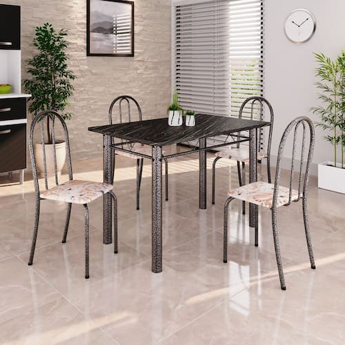 Quer deixar sua casa completa e prática? Uma dica bacana de como transformar o seu lar, deixando-o mais receptivo e bonito? Então você precisa de móveis indispensáveis para deixar seu lar muito mais aconchegante, receptivo e sempre disponível para receber a visita de amigos, familiares e convidados. Você vai se apaixonar por este incrível e moderno Conjunto de Mesa com 4 Cadeiras ANE B. Ideal para cozinha, ele é a melhor opção para completar o espaço que você desejar. Aproveite!! Medida da Mesa (A x L x P): 75,8 cm x 100 cm x 60 cm Peso da Mesa: 25,92 kg Mesa suporta até: 10.0000 Acabamento da Cadeira/Banco: Pintura Texturizada Acabamento da Mesa: Pintura Texturizada Ambiente Principal: Cozinha Cadeira/Banco estofada: Somente Assento Estofado Cadeira/Banco Estofada: Somente Assento Estofado Cadeira/Banco suporta até: 120.0000 codigo_ean: 7900288049308 Complexidade da Montagem: Baixa: pode ser montado por uma pessoa sozinha Cor: Bege / Prata Cor do Produto: Bege / Prata Cor Secundária: Bege De Canto (Canto Alemão): Não Escala de Brilho: Brilhante Espessura do Tampo: 1,5 mm Estrutura do Assento: MDP Formato do Tampo: Retangular Itens Inclusos: 1 Mesa, 4 Cadeiras, 1 Kit Ferragens e 1 Manual de Montagem Linha ou Coleção: Ane B Manual de Montagem e Instalação: https://product-hub-prd.madeiramadeira.com.br/975538/documents/85ca7600-ca66-49c9-af05-4677b92910c82645257352817375705415518.pdf Marca: Soma Móveis Material da Base da Mesa: Aço Material da Estrutura da Cadeira: Aço Material do Tampo: Ardósia Medida da Cadeira/Banco (A x L x P): 89 cm x 37 cm x 42 cm Medida do Tampo (L x C x E): 60 cm x 100 cm x 1,5 cm Mesa Extensível: Não Necessita Montagem: Sim Origem do Produto: Nacional Peso da Cadeira/Banco: 3 kg Possui Apoio Para os Pés: Não Quantidade de Cadeiras: 4 Quantidade de Lugares: 04 Recomendações de Uso, Manutenção e Limpeza: Não permitir que molhe os pés da base, usar um pano de tecido macio e seco, evitar detergentes, alvejantes e produtos químicos de limpeza; no tampo usar tecido macio levemente umedecido. Sistema de Montagem: Parafusos