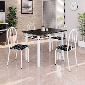Quer deixar sua casa completa e prática? Uma dica bacana de como transformar o seu lar, deixando-o mais receptivo e bonito? Então você precisa de móveis indispensáveis para deixar seu lar muito mais aconchegante, receptivo e sempre disponível para receber a visita de amigos, familiares e convidados. Você vai se apaixonar por este incrível e moderno Conjunto de Mesa com 4 Cadeiras ANE B. Ideal para cozinha, ele é a melhor opção para completar o espaço que você desejar. Aproveite!! Medida da Mesa (A x L x P): 75,8 cm x 100 cm x 60 cm Peso da Mesa: 25,92 kg Mesa suporta até: 10.0000 Acabamento da Cadeira/Banco: Pintura Texturizada Acabamento da Mesa: Pintura Texturizada Ambiente Principal: Cozinha Cadeira/Banco estofada: Somente Assento Estofado Cadeira/Banco Estofada: Somente Assento Estofado Cadeira/Banco suporta até: 120.0000 codigo_ean: 7900288049339 Complexidade da Montagem: Baixa: pode ser montado por uma pessoa sozinha Cor: Preto / Branco Cor do Produto: Preto / Branco Cor Secundária: Cinza De Canto (Canto Alemão): Não Escala de Brilho: Brilhante Espessura do Tampo: 1,5 mm Estrutura do Assento: MDP Formato do Tampo: Retangular Itens Inclusos: 1 Mesa, 4 Cadeiras, 1 Kit Ferragens e 1 Manual de Montagem Linha ou Coleção: Ane B Manual de Montagem e Instalação: https://product-hub-prd.madeiramadeira.com.br/975541/documents/e13e399e-0331-496b-96e1-ed3568f559712645257352817375705415518.pdf Marca: Soma Móveis Material da Base da Mesa: Aço Material da Estrutura da Cadeira: Aço Material do Tampo: Ardósia Medida da Cadeira/Banco (A x L x P): 89 cm x 37 cm x 42 cm Medida do Tampo (L x C x E): 60 cm x 100 cm x 1,5 cm Mesa Extensível: Não Necessita Montagem: Sim Origem do Produto: Nacional Peso da Cadeira/Banco: 3 kg Possui Apoio Para os Pés: Não Quantidade de Cadeiras: 4 Quantidade de Lugares: 04 Recomendações de Uso, Manutenção e Limpeza: Não permitir que molhe os pés da base, usar um pano de tecido macio e seco, evitar detergentes, alvejantes e produtos químicos de limpeza; no tampo usar tecido macio levemente umedecido. Sistema de Montagem: Parafusos