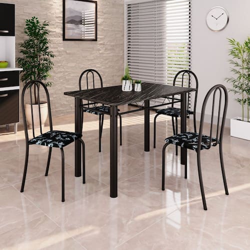 Quer deixar sua casa completa e prática? Uma dica bacana de como transformar o seu lar, deixando-o mais receptivo e bonito? Então você precisa de móveis indispensáveis para deixar seu lar muito mais aconchegante, receptivo e sempre disponível para receber a visita de amigos, familiares e convidados. Você vai se apaixonar por este incrível e moderno Conjunto de Mesa com 4 Cadeiras ANE B. Ideal para cozinha, ele é a melhor opção para completar o espaço que você desejar. Aproveite!! Medida da Mesa (A x L x P): 75,8 cm x 100 cm x 60 cm Peso da Mesa: 25,92 kg Mesa suporta até: 10.0000 Acabamento da Cadeira/Banco: Pintura Texturizada Acabamento da Mesa: Pintura Texturizada Ambiente Principal: Cozinha Cadeira/Banco estofada: Somente Assento Estofado Cadeira/Banco Estofada: Somente Assento Estofado Cadeira/Banco suporta até: 120.0000 codigo_ean: 7900288049377 Complexidade da Montagem: Baixa: pode ser montado por uma pessoa sozinha Cor: Preto Cor do Produto: Preto Cor Secundária: Cinza De Canto (Canto Alemão): Não Escala de Brilho: Semi-Brilho Espessura do Tampo: 1,5 mm Estrutura do Assento: MDP Formato do Tampo: Retangular Itens Inclusos: 1 Mesa, 4 Cadeiras, 1 Kit Ferragens e 1 Manual de Montagem Linha ou Coleção: Ane B Manual de Montagem e Instalação: https://product-hub-prd.madeiramadeira.com.br/975545/documents/9129dcd6-c4a7-4c07-9ec4-d80bf76346ff2645257352817375705415518.pdf Marca: Soma Móveis Material da Base da Mesa: Aço Material da Estrutura da Cadeira: Aço Material do Tampo: Ardósia Medida da Cadeira/Banco (A x L x P): 89 cm x 37 cm x 42 cm Medida do Tampo (L x C x E): 60 cm x 100 cm x 1,5 cm Mesa Extensível: Não Necessita Montagem: Sim Origem do Produto: Nacional Peso da Cadeira/Banco: 3 kg Possui Apoio Para os Pés: Não Quantidade de Cadeiras: 4 Quantidade de Lugares: 04 Recomendações de Uso, Manutenção e Limpeza: Não permitir que molhe os pés da base, usar um pano de tecido macio e seco, evitar detergentes, alvejantes e produtos químicos de limpeza; no tampo usar tecido macio levemente umedecido. Sistema de Montagem: Parafusos