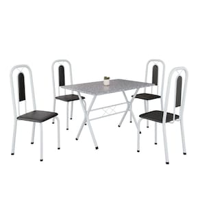 Quer deixar sua casa completa e prática? Uma dica bacana de como transformar o seu lar, deixando-o mais receptivo e bonito? Então você precisa de móveis indispensáveis para deixar seu lar muito mais aconchegante, receptivo e sempre disponível para receber a visita de amigos, familiares e convidados. Você vai se apaixonar por este incrível e moderno Conjunto de Mesa com 4 Cadeiras. Ideal para cozinha, ele é a melhor opção para completar o espaço que você desejar. Aproveite!! Medida da Mesa (A x L x P): 75,8 cm x 100 cm x 60 cm Peso da Mesa: 33,9 kg Mesa suporta até: 10.0000 Acabamento da Cadeira/Banco: Pintura Texturizada Acabamento da Mesa: Pintura Texturizada Ambiente Principal: Cozinha Cadeira/Banco Estofada: Somente Assento Estofado Cadeira/Banco estofada: Somente Assento Estofado Cadeira/Banco suporta até: 120.0000 codigo_ean: 7900288128690 Complexidade da Montagem: Baixa: pode ser montado por uma pessoa sozinha Cor: Preto Cor do Produto: Preto Cor Secundária: Cinza De Canto (Canto Alemão): Não Escala de Brilho: Semi-Brilho Espessura do Tampo: 1,5 mm Estrutura do Assento: MDP Formato do Tampo: Retangular Itens Inclusos: 1 Mesa, 4 Cadeiras, Kit Ferragens e Manual de Montagem Linha ou Coleção: Lívia Manual de Montagem e Instalação: https://product-hub-prd.madeiramadeira.com.br/180308408/documents/54a931cb-9639-4a24-8b85-58464771589842716723352817406057034671.pdf Marca: Soma Móveis Material da Base da Mesa: Aço Material da Estrutura da Cadeira: Aço Material do Tampo: Granito Medida da Cadeira/Banco (A x L x P): 94 cm x 36 cm x 40 cm Medida do Tampo (L x C x E): 100cm x 60cm x 1,5 cm Mesa Extensível: Não Necessita Montagem: Sim Origem do Produto: Nacional Peso da Cadeira/Banco: 2,28 kg Possui Apoio Para os Pés: Não Quantidade de Cadeiras: 4 Quantidade de Lugares: 04 Recomendações de Uso, Manutenção e Limpeza: Não permitir que molhe os pés da base, usar um pano de tecido macio e seco, evitar detergentes, alvejantes e produtos químicos de limpeza; no tampo usar tecido macio levemente umedecido. Sistema de Montagem: Parafusos