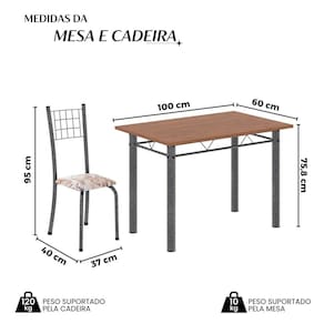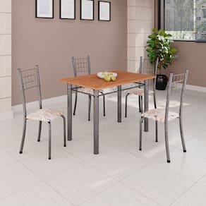 Quer deixar sua casa completa e prática? Uma dica bacana de como transformar o seu lar, deixando-o mais receptivo e bonito? Então você precisa de móveis indispensáveis para deixar seu lar muito mais aconchegante, receptivo e sempre disponível para receber a visita de amigos, familiares e convidados. Você vai se apaixonar por este incrível e moderno Conjunto de Mesa com 4 Cadeiras. Ideal para cozinha, ele é a melhor opção para completar o espaço que você desejar. Aproveite!! Medida da Mesa (A x L x P): 75,8 cm x 100 cm x 60 cm Peso da Mesa: 11,46 kg Mesa suporta até: 10.0000 Acabamento da Cadeira/Banco: Pintura Texturizada Acabamento da Mesa: Pintura Texturizada Ambiente Principal: Sala de Jantar Cadeira/Banco estofada: Somente Assento Estofado Cadeira/Banco Estofada: Somente Assento Estofado Cadeira/Banco suporta até: 120.0000 codigo_ean: 7900288053190 Complexidade da Montagem: Baixa: pode ser montado por uma pessoa sozinha Cor: Bege/Prata Cor do Produto: Bege/Prata Cor Secundária: Bege De Canto (Canto Alemão): Não Escala de Brilho: Brilhante Espessura do Tampo: 1,5 mm Estrutura do Assento: MDP Formato do Tampo: Retangular Itens Inclusos: 1 Mesa, 4 Cadeiras, 1 Kit Ferragens + Manual de Montagem Linha ou Coleção: Dany Manual de Montagem e Instalação: https://product-hub-prd.madeiramadeira.com.br/975909/documents/53920f8d-a0b0-4e5e-9374-2a6ff6582ed32645612352817375766831192.pdf Marca: Soma Móveis Material da Base da Mesa: Aço Material da Estrutura da Cadeira: Aço Material do Tampo: MDF Medida da Cadeira/Banco (A x L x P): 95 cm x 37 cm x 40 cm Medida do Tampo (L x C x E): 60 cm x 100 cm x 1,5 cm Mesa Extensível: Não Necessita Montagem: Sim Origem do Produto: Nacional Peso da Cadeira/Banco: 2,94 kg Possui Apoio Para os Pés: Não Quantidade de Cadeiras: 4 Quantidade de Lugares: 04 Recomendações de Uso, Manutenção e Limpeza: Não permitir que molhe os pés da base, usar um pano de tecido macio e seco, evitar detergentes, alvejantes e produtos químicos de limpeza; no tampo usar tecido macio levemente umedecido. Sistema de Montagem: Parafusos