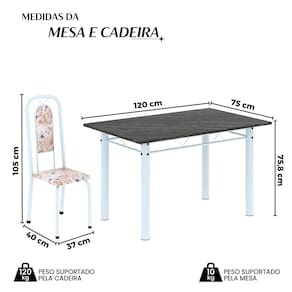 Quer deixar sua casa completa e prática? Uma dica bacana de como transformar o seu lar, deixando-o mais receptivo e bonito? Então você precisa de móveis indispensáveis para deixar seu lar muito mais aconchegante, receptivo e sempre disponível para receber a visita de amigos, familiares e convidados. Você vai se apaixonar por este incrível e moderno Conjunto de Mesa com 4 Cadeiras. Ideal para cozinha, ele é a melhor opção para completar o espaço que você desejar. Aproveite!! Medida da Mesa (A x L x P): 75 cm x 120 cm x 75 cm Peso da Mesa: 43,48 kg Mesa suporta até: 8 kg Acabamento da Cadeira/Banco: Pintura Texturizada Acabamento da Mesa: Pintura Texturizada Ambiente Principal: Cozinha Cadeira/Banco estofada: Encosto e Assento Estofados Cadeira/Banco suporta até: 120 kg codigo_ean: 7900288140098 Complexidade da Montagem: Baixa: pode ser montado por uma pessoa sozinha Cor: Botanic Bege / Branco Cor do Produto: Botanic Bege / Branco Cor Secundária: Bege De Canto (Canto Alemão): Não Enchimento do Assento: Espuma D-16 Escala de Brilho: Brilhante Espessura do Tampo: 1,5 mm Estrutura do Assento: MDP Formato do Tampo: Retangular Itens Inclusos: 1 Mesa, 4 Cadeiras, Kit Ferragens e Manual de Montagem Linha ou Coleção: Lara Manual de Montagem e Instalação: https://product-hub-prd.madeiramadeira.com.br/992432/documents/9e2ebbc6-e827-4685-872e-52e46073e3e32818001352817441405246925.pdf Marca: Soma Móveis Material da Base da Mesa: Aço Material da Estrutura da Cadeira: Aço Material do Tampo: Ardósia Medida da Cadeira/Banco (A x L x P): 105 cm x 37 cm x 40 cm Medida do Tampo (L x C x E): 120cm x 75cm x 1,5 cm Mesa Extensível: Não Necessita Montagem: Sim Origem do Produto: Nacional Peso da Cadeira/Banco: 2,7 kg Possui Apoio Para os Pés: Não Quantidade de Cadeiras: 4 Quantidade de Lugares: 04 Recomendações de Uso, Manutenção e Limpeza: Não permitir que molhe os pés da base, usar um pano de tecido macio e seco, evitar detergentes, alvejantes e produtos químicos de limpeza; no tampo usar tecido macio levemente umedecido. Revestimento da Cadeira/Banco: Couro Ecológico Sistema de Montagem: Parafusos