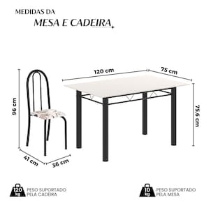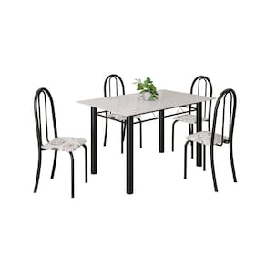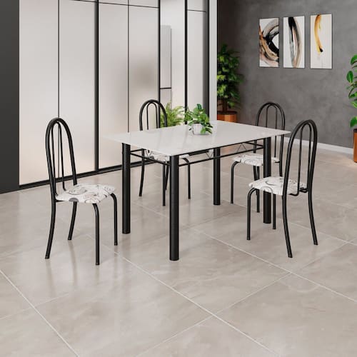Quer deixar sua casa completa e prática? Uma dica bacana de como transformar o seu lar, deixando-o mais receptivo e bonito? Então você precisa de móveis indispensáveis para deixar seu lar muito mais aconchegante, receptivo e sempre disponível para receber a visita de amigos, familiares e convidados. Você vai se apaixonar por este incrível e moderno Conjunto de Mesa com 4 Cadeiras. Ideal para cozinha, ele é a melhor opção para completar o espaço que você desejar. Aproveite!! Medida da Mesa (A x L x P): 75,6 cm x 120 cm x 75cm Peso da Mesa: 20 kg Mesa suporta até: 10.0000 Acabamento da Cadeira/Banco: Pintura Texturizada Acabamento da Mesa: Pintura Texturizada Ambiente Principal: Cozinha Cadeira/Banco Estofada: Somente Assento Estofado Cadeira/Banco estofada: Somente Assento Estofado Cadeira/Banco suporta até: 120.0000 codigo_ean: 7900288134127 Complexidade da Montagem: Baixa: pode ser montado por uma pessoa sozinha Cor: Off White/ Preto Cor do Produto: Off White/ Preto Cor Secundária: Bege De Canto (Canto Alemão): Não Escala de Brilho: Semi-Brilho Espessura do Tampo: 6 mm Espessura do Vidro: 6 mm Estrutura do Assento: MDP Formato do Tampo: Retangular Itens Inclusos: 1 Mesa, 4 Cadeiras, Kit Ferragens e Manual de Montagem Linha ou Coleção: Iris B Manual de Montagem e Instalação: https://product-hub-prd.madeiramadeira.com.br/790100569/documents/d0388837-f7bc-4a57-ac18-836d3261f00ba2653848352817381021070967.pdf Marca: Soma Móveis Material da Base da Mesa: Aço Material da Estrutura da Cadeira: Aço Material do Tampo: Vidro Medida da Cadeira/Banco (A x L x P): 96 cm x 36 cm x 41 cm Medida do Tampo (L x C x E): 75 cm x 120 cm x 0,6 cm Mesa Extensível: Não Necessita Montagem: Sim Origem do Produto: Nacional Peso da Cadeira/Banco: 3,88 kg Possui Apoio Para os Pés: Não Possui Suporte Giratório: Não Quantidade de Cadeiras: 4 Quantidade de Lugares: 04 Recomendações de Uso, Manutenção e Limpeza: Não permitir que molhe os pés da base, usar um pano de tecido macio e seco, evitar detergentes, alvejantes e produtos químicos de limpeza; no tampo usar tecido macio levemente umedecido. Sistema de Montagem: Parafusos Vidro Temperado: Sim