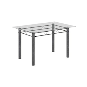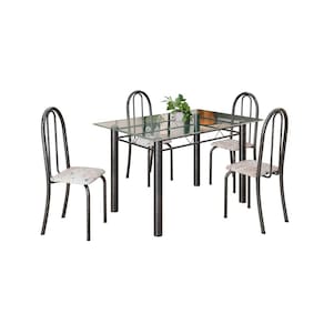 Conjunto de Mesa Tubular 120cm X 75cm Tampo em Vidro Incolor com 4 Cadeiras Bege / Prata