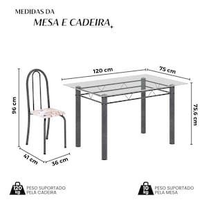Medida da Mesa (A x L x P): 75,6 cm x 120 cm x 75cm