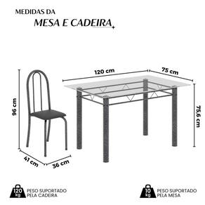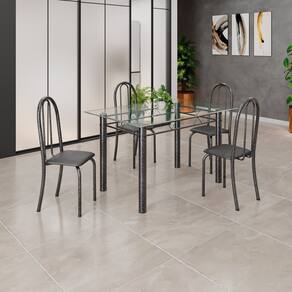 Quer deixar sua casa completa e prática? Uma dica bacana de como transformar o seu lar, deixando-o mais receptivo e bonito? Então você precisa de móveis indispensáveis para deixar seu lar muito mais aconchegante, receptivo e sempre disponível para receber a visita de amigos, familiares e convidados. Você vai se apaixonar por este incrível e moderno Conjunto de Mesa com 4 Cadeiras. Ideal para cozinha, ele é a melhor opção para completar o espaço que você desejar. Aproveite!! Medida da Mesa (A x L x P): 75,6 cm x 120 cm x 75cm Peso da Mesa: 20,3 kg Mesa suporta até: 10.0000 Acabamento da Cadeira/Banco: Pintura Texturizada Acabamento da Mesa: Pintura Texturizada Ambiente Principal: Cozinha Cadeira/Banco estofada: Somente Assento Estofado Cadeira/Banco Estofada: Somente Assento Estofado Cadeira/Banco suporta até: 120.0000 codigo_ean: 7900288061713 Complexidade da Montagem: Baixa: pode ser montado por uma pessoa sozinha Cor: Preto Liso/Martelado Prata Cor do Produto: Preto Liso/Martelado Prata Cor Secundária: Cinza De Canto (Canto Alemão): Não Escala de Brilho: Brilhante Espessura do Tampo: 6 mm Espessura do Vidro: 6 mm Estrutura do Assento: MDP Formato do Tampo: Retangular Itens Inclusos: 1 Mesa + 4 Cadeiras + Kit Ferragens + Manual de Montagem Linha ou Coleção: Iris B Manual de Montagem e Instalação: https://product-hub-prd.madeiramadeira.com.br/976144/documents/3c216181-427e-42ce-9cb1-8e40f0afa0e72653848352817381021070967.pdf Marca: Soma Móveis Material da Base da Mesa: Aço Material da Estrutura da Cadeira: Aço Material do Tampo: Vidro Medida da Cadeira/Banco (A x L x P): 96 cm x 36 cm x 41 cm Medida do Tampo (L x C x E): 75 cm x 120 cm x 0,6 cm Mesa Extensível: Não Necessita Montagem: Sim Origem do Produto: Nacional Peso da Cadeira/Banco: 3,88 kg Possui Apoio Para os Pés: Não Possui Suporte Giratório: Não Quantidade de Cadeiras: 4 Quantidade de Lugares: 04 Recomendações de Uso, Manutenção e Limpeza: Não permitir que molhe os pés da base, usar um pano de tecido macio e seco, evitar detergentes, alvejantes e produtos químicos de limpeza; no tampo usar tecido macio levemente umedecido. Sistema de Montagem: Parafusos Vidro Temperado: Sim