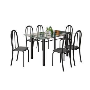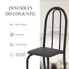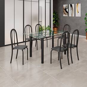 completar o espaço que você desejar. Aproveite!! Medida da Mesa (A x L x P): 75,6 cm x 140 cm x 75cm Peso da Mesa: 22,26 kg Mesa suporta até: 10.0000 Acabamento da Cadeira/Banco: Pintura Texturizada Acabamento da Mesa: Pintura Texturizada Ambiente Principal: Sala de Jantar Cadeira/Banco estofada: Somente Assento Estofado Cadeira/Banco Estofada: Somente Assento Estofado Cadeira/Banco suporta até: 120.0000 codigo_ean: 7900288062949 Complexidade da Montagem: Baixa: pode ser montado por uma pessoa sozinha Cor: Preto / Preto Cor do Produto: Preto / Preto Cor Secundária: Cinza De Canto (Canto Alemão): Não Escala de Brilho: Semi-Brilho Espessura do Tampo: 6 mm Espessura do Vidro: 6 mm Estrutura do Assento: MDP Formato do Tampo: Retangular Itens Inclusos: 1 Mesa + 6 Cadeiras + 1 Kit Ferragens + Manual de Montagem Linha ou Coleção: Iris B Manual de Montagem e Instalação: https://product-hub-prd.madeiramadeira.com.br/976437/documents/201d160e-b395-4fc6-add0-f8ea1271d0f42653848352817381021070967.pdf Marca: Soma Móveis Material da Base da Mesa: Aço Material da Estrutura da Cadeira: Aço Material do Tampo: Vidro Medida da Base (A x L x P): 75cm x 63,5 cm x 108 cm Medida da Cadeira/Banco (A x L x P): 96 cm x 36 cm x 41 cm Medida do Tampo (L x C x E): 75 cm x 140 cm x 0,6 cm Mesa Extensível: Não Necessita Montagem: Sim Origem do Produto: Nacional Peso da Cadeira/Banco: 3,88 kg Possui Apoio Para os Pés: Não Possui Suporte Giratório: Não Quantidade de Cadeiras: 6 Quantidade de Lugares: 06 Recomendações de Uso, Manutenção e Limpeza: Não permitir que molhe os pés da base, usar um pano de tecido macio e seco, evitar detergentes, alvejantes e produtos químicos de limpeza; no tampo usar tecido macio levemente umedecido. Sistema de Montagem: Parafusos Vidro Temperado: Sim