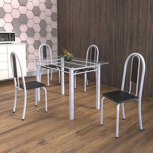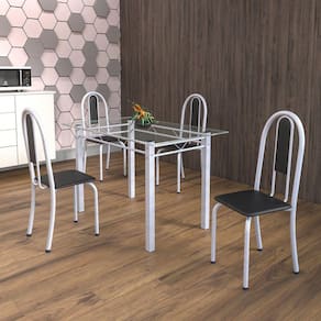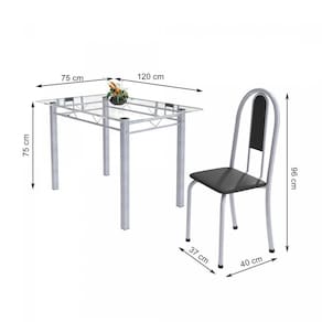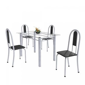 Quer deixar sua casa completa? Uma dica bacana de como transformar o seu lar, deixando-o mais receptivo e bonito? Então você precisa de móveis indispensáveis e deixar seu lar muito mais aconchegante, receptivo e sempre disponível para receber a visita de amigos, familiares e convidados. Você vai se apaixonar por este incrível Conjunto de Mesa com 4 Cadeiras IRIS. Ideal para cozinha, ele é a melhor opção para completar o espaço. Aproveite!! Acabamento da Cadeira/Banco: Pintura Texturizada Acabamento da Mesa: Pintura Texturizada Almofada do assento: Fixa Altura do Conjunto: Ambiente Principal: Cozinha Apoio para Braços Estofado: Cadeira/Banco estofada: Sim Cadeira/Banco suporta até: 120 Complexidade da Montagem: Média: pode ser montado por mais de uma pessoa e/ou necessite de maior conhecimento para montagem Cor: Preto/Pérola Cor do Produto: Preto/Pérola Enchimento do Assento: Espuma D-16 Enchimento do Encosto: Espuma D-16 Escala de Brilho: Fosco Espessura do Tampo: 6 Estrutura do Assento: Assento em MDP de 15mm c/ couríssimo. Estrutura do Encosto: MDP de 15mm c/ courissimo Informações Complementares: Itens Inclusos: 1 Mesa, 4 Cadeiras, Kit Ferragens e Manual de Montagem Linha ou Coleção: Iris Manual de Especificação Técnica: https://cdn2.madeiramadeira.com.br/atributo/soma-m-veis/892108-manual-de-montagem-cad-iris-a-rev-0-0.pdf Manual de Montagem e Instalação: https://cdn2.madeiramadeira.com.br/atributo/soma-m-veis/892107-manual-de-montagem-base-013.pdf Material da Base da Mesa: Aço Material da Estrutura da Cadeira: Aço Medida da Base (A x L x P): Medida da Cadeira/Banco (A x L x P): 99cmx37cmx40cm Medida da Mesa (A x L x P): 75cmx120cmx75cm Medida do Canto Alemão (A x L x P): Medida do Suporte Giratório (L x C x E): Medida do Tampo (L x C x E): 120cmx75cm Mesa suporta até: 8 Necessita Montagem: Sim Origem do Produto: Nacional Peso da Cadeira/Banco: 4,5 Peso da Mesa: 19,42 Possui Apoio para Braços: Não Possui Apoio Para os Pés: Não Possui Suporte Giratório: Não Recomendações de Uso, Manutenção e Limpeza: Não permitir que molhe os pés da base, usar um pano de tecido macio e seco, evitar detergentes, alvejantes e produtos químicos de limpeza; no tampo usar tecido macio levemente umedecido. Revestimento da Cadeira/Banco: Couro Ecológico Sistema de Montagem: Parafusos, cavilhas Tipo de Madeira Maciça da Base da Mesa: Tipo de Madeira Maciça do Tampo: Vidro Temperado: Sim