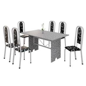 Produto: Conjunto de Mesa Tubular 6 Cadeiras 140x75cm Mart Perola com Tampo em Granito Ocre Letícia 070 - Tudo de Móveis Cor: Preto Floral