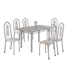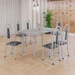 Conjunto de Mesa Tubular 6 Cadeiras 140x75cm Mart Perola com Tampo em Granito Topázio Brenda 010 - Tudo de Móveis