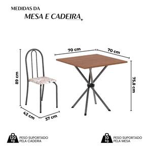 completar o espaço que você desejar. Aproveite!! Medida da Mesa (A x L x P): 75,8 cm x 70cm X 70cm Peso da Mesa: 6,53 kg Mesa suporta até: 10 kg Acabamento da Cadeira/Banco: Pintura Texturizada Acabamento da Mesa: Pintura Texturizada Ambiente Principal: Cozinha Cadeira/Banco Estofada: Somente Assento Estofado Cadeira/Banco estofada: Somente Assento Estofado Cadeira/Banco suporta até: 120 kg codigo_ean: 7900288121752 Complexidade da Montagem: Baixa: pode ser montado por uma pessoa sozinha Cor: Botanic Bege / Mart Prata Cor do Produto: Botanic Bege / Mart Prata Cor Secundária: Cinza De Canto (Canto Alemão): Não Escala de Brilho: Semi-Brilho Espessura do Tampo: 1,5 mm Estrutura do Assento: MDP Formato do Tampo: Quadrado Itens Inclusos: 1 Mesa, 4 Cadeiras, Kit Ferragens e Manual de Montagem Linha ou Coleção: Ane B Manual de Montagem e Instalação: https://product-hub-prd.madeiramadeira.com.br/918356222/documents/561c548e-69f6-4722-8e70-89cd22a8a5e422699287352817399065305255.pdf Marca: Soma Móveis Material da Base da Mesa: Aço Material da Estrutura da Cadeira: Aço Material do Tampo: MDF Medida da Base (A x L x P): 75 cm x 49cm² Medida da Cadeira/Banco (A x L x P): 89 cm x 37 cm x 42 cm Medida do Tampo (L x C x E): 70 cm x 70 cm x 1,5 cm Mesa Extensível: Não Necessita Montagem: Sim Origem do Produto: Nacional Peso da Cadeira/Banco: 3 kg Possui Apoio Para os Pés: Não Quantidade de Cadeiras: 4 Quantidade de Lugares: 04 Recomendações de Uso, Manutenção e Limpeza: Não permitir que molhe os pés da base, usar um pano de tecido macio e seco, evitar detergentes, alvejantes e produtos químicos de limpeza; no tampo usar tecido macio levemente umedecido. Sistema de Montagem: Parafusos Marca: Não Informado