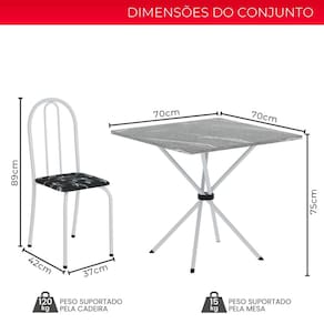 Medidas da Mesa (A x L x P): 75 cm x 70 cm x 70 cm