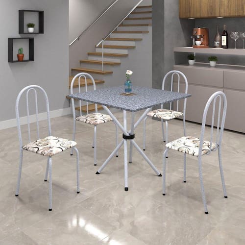 Quer deixar sua casa completa e prática? Uma dica bacana de como transformar o seu lar, deixando-o mais receptivo e bonito? Então você precisa de móveis indispensáveis para deixar seu lar muito mais aconchegante, receptivo e sempre disponível para receber a visita de amigos, familiares e convidados. Você vai se apaixonar por este incrível e moderno Conjunto de Mesa com 4 Cadeiras ANE B. Ideal para cozinha, ele é a melhor opção para completar o espaço que você desejar. Aproveite!! Medida da Mesa (A x L x P): 75x70x70cm Peso da Mesa: 30,9 kg Mesa suporta até: 10.0000 Acabamento da Cadeira/Banco: Pintura Texturizada Acabamento da Mesa: Pintura Texturizada Ambiente Principal: Cozinha Cadeira/Banco estofada: Sim Cadeira/Banco suporta até: 120.0000 codigo_ean: 7909903253717 Complexidade da Montagem: Baixa: pode ser montado por uma pessoa sozinha Cor: Arabesco/Martelado Pérola/Granito Ocre Cor do Produto: Arabesco/Martelado Pérola/Granito Ocre Enchimento do Assento: Espuma D-16 Escala de Brilho: Semi-Brilho Espessura do Tampo: 0,6 mm Estrutura do Assento: MDP Itens Inclusos: 1 Mesa, 4 Cadeiras, Kit Ferragens e Manual de Montagem Linha ou Coleção: Ane Manual de Montagem e Instalação: https://product-hub-prd.madeiramadeira.com.br/826726/documents/88f6571f-5fe9-4674-ba51-00eee1eb80ed1179232ilovepdfmerged30.pdf Manutenção: Não permitir que molhe os pés da base, usar um pano de tecido macio e seco, evitar detergentes, alvejantes e produtos químicos de limpeza; no tampo usar tecido macio levemente umedecido. Material da Base da Mesa: Aço Material da Estrutura da Cadeira: Aço Material do Tampo: Granito Medida da Cadeira/Banco (A x L x P): 89x37x42cm Medida do Tampo (L x C x E): 75x75x1,5cm Necessita Montagem: Sim Origem do Produto: Nacional Peso da Cadeira/Banco: 3 kg Possui Apoio Para os Pés: Não Quantidade de Cadeiras: 4 Quantidade de Lugares: 04 Recomendações de Uso, Manutenção e Limpeza: Não permitir que molhe os pés da base, usar um pano de tecido macio e seco, evitar detergentes, alvejantes e produtos químicos de limpeza; no tampo usar tecido macio levemente umedecido. Revestimento da Cadeira/Banco: Couro Ecológico Sistema de Montagem: Parafusos Ean: 7909903253717