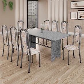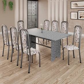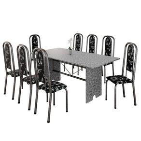 Produto: Conjunto de Mesa Tubular 8 Cadeiras 180x75cm Mart Prata com Tampo em Granito Ocre Letícia 071 - Tudo de Móveis Cor: Preto Floral