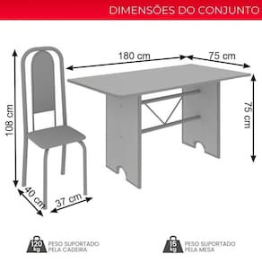 Medidas da Mesa (A x L x P): 75 cm x 75 cm x 180 cm
