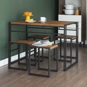 Que tal o Conjunto de Mesa Wooden com 4 Bancos?O que acha da decoração industrial? O Conjunto de Mesa Wooden com 4 Bancos é uma boa opção para quem pensa em abusar desse estilo. A combinação entre tubos pretos e a madeira em evidência é um traço marcante da tendência e funciona também como destaque em decorações onde o estilo mais urbano predomina, afinal, na sua casa, o especialista em decoração é você.