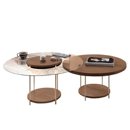 Conjunto de Mesas de Centro Sky com Tampo de Vidro e em MDF - HB Móveis - Marrom Escuro