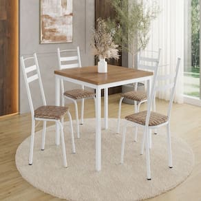 Transforme suas refeições em momentos ainda mais especiais com nosso conjunto de Mesa Adriana. Com um design moderno e versátil, ele combina perfeitamente com diversos estilos de decoração, proporcionando conforto e charme para o seu ambiente. Seja para cafés da manhã em família, jantares especiais ou encontros com amigos, este conjunto é a escolha certa para quem busca qualidade, funcionalidade e bom gosto. Acabamento da Cadeira/Banco: Pintura Epóxi Acabamento da Mesa: Pintura Epóxi Almofada do assento: Fixa Almofada do encosto: Fixa Ambiente Principal: Cozinha Cadeira/Banco estofada: Somente Assento Estofado Cadeira/Banco suporta até: 120 kg codigo_ean: 7900288134769 Complexidade da Montagem: Média: pode ser montado por mais de uma pessoa e/ou necessite de maior conhecimento para montagem Configuração do Conjunto: Mesa com Cadeiras Cor: Branco/Rattan/ Demolição Cor da Base: Branco Cor do Produto: Branco/Rattan/ Demolição Cor do Tampo: Marrom Cor Flex: Não De Canto (Canto Alemão): Não Escala de Brilho: Semi-Brilho Espessura do Tampo: 30 mm Estrutura do Assento: MDP Estrutura do Encosto: AÇO CARBONO Formato do Tampo: Quadrado Informações Complementares: Revestimento Tampo em BP/ Embalagem em papelão e plástico termoencolhivel Itens Inclusos: 1 Mesa, 4 Cadeiras, Manual de Montagem e Kit Ferragens Manual de Montagem e Instalação: https://cdn2.madeiramadeira.com.br/atributo/artefamol/2882568-5273-17458088941123.pdf Marca: Artefamol Material da Base da Mesa: Aço Carbono Material da Estrutura da Cadeira: Aço Carbono Material Principal das Cadeiras/Bancos: Aço Carbono Medida da Cadeira/Banco (A x L x P): 92x34x41 Medida da Mesa (A x L x P): 78x90x90 Medida do Tampo (L x C x E): 90x90x3 Mesa Dobrável: Não Mesa Extensível: Não Mesa suporta até: 60 kg Montagem Flex: Não Necessita Montagem: Sim Origem do Produto: Nacional Peso da Cadeira/Banco: 3,5 kg Peso da Mesa: 17,01 kg Possui Apoio para Braços: Não Possui Apoio Para os Pés: Não Possui Prateleiras: Não Possui Rodízio: Não Possui Suporte Giratório: Não Possui Vidro: Não Quantidade de Cadeiras: 4 Recomendações de Uso, Manutenção e Limpeza: Para manter seu móvel novo por muito mais tempo, evite locais úmidos, mantenha-o distante de líquidos e de fontes de calor. Evite a exposição prolongada ao sol. Para limpá-lo com segurança utilize uma flanela seca sem produtos abrasivos e nem lustra móveis. Sistema de Montagem: Pafusos, sapatas, arruelas Tipo de Assento: Fixo Tipo de Encosto: Fixo