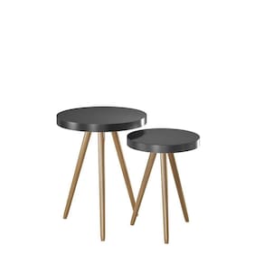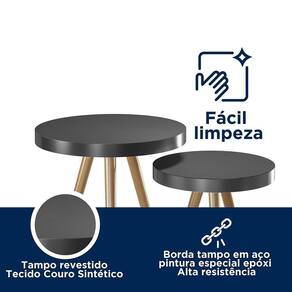 Conjunto De Mesas Laterais Málaga Preto - Salaone Preto Conjunto de Mesas Laterais Málaga - Salaone Com seu design vintage retrô, as Mesas Málaga vão dar aquele toque de estilo e conforto ao seu lar. O conjunto é composto por 2 mesas que possuem o tampo revestido em tecido couríssimo de extrema qualidade, cintas em aço com pintura epóxi e pés em madeira maciça de eucalipto, tornando-as em um móvel resistente e duradouro. ESPECIFICAÇÕES: - Base do tampo em MDF de 15mm - Tampo revestido em couríssimo - Cintas em aço - Pintura epóxi - Pés em madeira eucalipto