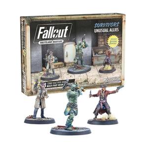 Modiphius Fallout - Wasteland Warfare - Survivors Unusual Allies - Viajando pelos restos da velha Terra, os sobreviventes encontram uma ampla variedade de aliados e inimigos em todas as formas e tamanhos. Sintetizadores de detetives autoconscientes. Prefeitos coloniais assassinos - Super mutantes em busca de leite duvidoso. Todos estes e mais são aliados para fazer amizade no deserto. Este conjunto contém três miniaturas Survivors de resina de alta qualidade em escala de 32 mm, cada uma com bases cênicas exclusivas, para permitir que os jogadores expandam seus jogos Fallout: Wasteland Warfare - Número de jogadores: 2 - Peso do pacote do item: 0 kg