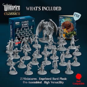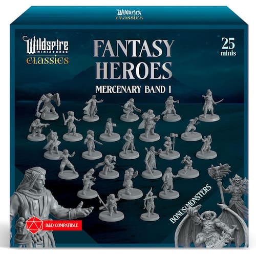- Sobre o conjunto Mercenary Band I Classic da Wildspire: total de 25 minis exclusivos para dnd. Feito para pintar como hobby e jogos de DND. Feito de plástico, totalmente montado e pintável; projetado em escala de 28 mm para jogos de D&D e fantasia; perfeito para aprimorar sua experiência de mesa com figuras dnd. Também inclui 3 monstros chefes em miniatura. Tudo compatível com miniaturas de masmorras e dragões.