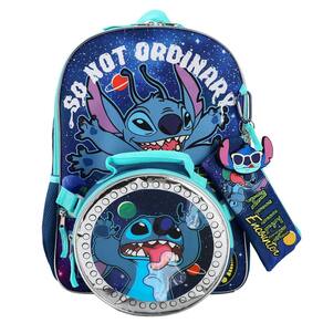 BIOWORLD Lilo & Stitch Conjunto de mochila de 5 peças (criança pequena), roxo, tamanho único, Roxa, Tamanho único, Lilo & Stitch Conjunto de mochila de 5 peças (criança pequena/criança grande) - Lancheira isolada - Estojo utilitário - Chaveiro de borracha moldada - Alças ajustáveis - Bolsos laterais de malha