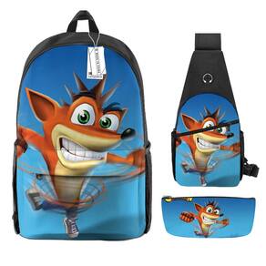 Conjunto de mochilas Crashs Bandicoots Anime School 3 unidades/lote