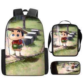 Conjunto de mochilas Crayons Shins Chans Anime School 3 unidades com bolsa