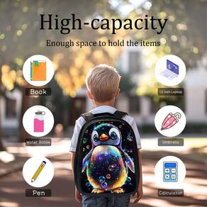 - Grande capacidade, esta mochila também é muito funcional! O design do compartimento dentro da mochila permite que as crianças armazenem livros de forma mais ordenada. A abertura e o fechamento com zíper duplo são muito convenientes, e os dois bolsos de malha laterais podem conter garrafas de água e guarda-chuvas. A lancheira pode acomodar a maioria das lancheiras, garantindo que as crianças possam trazer refeições deliciosas. O estojo de lápis também oferece amplo espaço para pincéis infantis