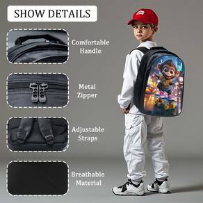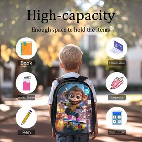 - Material O tecido leve de poliéster não só torna a mochila leve, mas também muito durável. O processo de costura múltipla e o zíper suave garantem a durabilidade da mochila, que é muito adequada para o uso diário das crianças. O design respirável e confortável e as alças de ombro ajustáveis podem efetivamente reduzir a carga nas costas. O design da alça superior também é muito conveniente, facilitando o levantamento da mochila