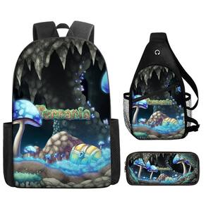 Conjunto de mochilas Terrarias Anime, 3 peças para mochila escolar infantil