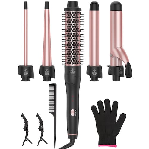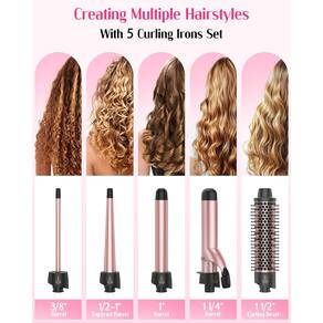 ANIEKIN Conjunto de modelador de cachos 5 em 1, varinha de cachos de aquecimento rápido de 9,5 cm a 3,8 cm e uma escova térmica vêm com modelador de cabelo de dupla tensão para mulheres, todos os - Opções de estilo versáteis: Inclui 4 tamanhos diferentes de modeladores de cerâmica intercambiáveis e uma escova térmica. Os tamanhos são 3/8, 1/2-1, 1, 1 1/4, 1 1/5.1 cm. Pode ser feito separadamente cachos apertados, ondas naturais, cachos grandes clássicos e cabelos lisos - Aquecimento rápido, economiza tempo: adotando a tecnologia de calor PTC, materiais superiores são utilizados para os elementos de aquecimento interno, para que possa aquecer em 30 segundos para um estilo instantâneo, economizando seu precioso tempo (varinha de ondulação: 200-210 °C, escova de ondulação: 180 °C). Ajudando você a alcançar seu penteado rapidamente em manhãs agitadas - Design de produto superior: ferramentas de cabelo com design de alça intercambiável. Pontas resistentes a queimaduras e luvas resistentes ao calor podem proteger suas mãos do balde de aquecimento. Dois acessórios de clipe podem ajudá-lo a completar melhor o estilo. Muito fácil de usar - Produto durável: A superfície do modelador de cachos é revestida com esmalte cerâmico de alta qualidade, que é suave e antiaderente ao cabelo, reduzindo a ocorrência de emaranhamento e quebra do cabelo. Adequado como presente de dia dos namorados, presente de dia das mães e presente de aniversário - Tensão dupla, uso mundial: ferramentas de modelagem de cabelo com um recurso integrado de dupla tensão (100-240 V), você pode usá-lo em qualquer lugar do mundo sem se preocupar com problemas de tensão durante a viagem, garantindo que você sempre tenha um ótimo penteado