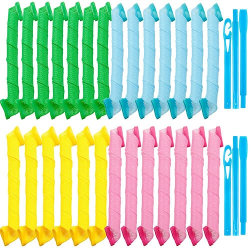 28 peças de modelador de cachos em espiral sem calor kit de modeladores de cabelo com 2 peças de ganchos para a maioria dos tipos de penteados. Design elástico: Os cachos espirais sem calor podem ser esticados a um comprimento suficiente enquanto são portáteis, fáceis de transportar em viagens, viagens de negócios, desempenho e assim por diante. Poupe tempo: Você pode usar os modeladores de cabelo quando dorme, basta amarrá-los com um cachecol, e então você pode esperar por lindos cachos no dia seguinte. Fácil de usar: Passo 1: Cabelo molhado (o cabelo não é eficaz quando está completamente seco) Passo 2: Divisória de cabelo (divida o cabelo em vários pedaços) Passo 3: Ferramenta de ondulação de emenda (alinhe a interface, aperte com firmeza) Passo 4: Use modelador de cabelo (abra a abertura de borracha macia e enrosque a ferramenta de ondulação nos modeladores de cabelo) Passo 5: Para prender o cabelo, use o gancho que passa pelo modelador para prender uma pequena quantidade de cabelo Passo 6: Retire a ferramenta de ondulação (segure o modelador com uma mão e puxe o gancho com a outra) Passo 7: Divida o cabelo em pequenas seções, repita os passos 5 e 6. Depois que todos os cachos estiverem prontos, você pode levá-lo para dormir e ele automaticamente moldará no dia seguinte, ou soprá-lo com um secador de cabelo por 5 a 10 minutos até que o cabelo esteja seco e depois modelá-lo. Ampla utilização: Os rolos de cabelo cacheado são adequados para vários tipos de cabelo, por exemplo, peruca com frizzy, naturalmente encaracolado, liso e uniforme. Bons presentes para familiares e amigos, aproveite a conveniência dos rolos de cabelo sem calor. Especificações: Cor: como mostrado na imagem. Tamanho: como mostrado na imagem. A embalagem inclui: 28 modeladores. 2 ganchos de instalação. Observações: Quantos modeladores usar de uma só vez é de acordo com a espessura do cabelo. Quanto menos a quantidade de cabelo enganchado ao enrolar, melhor o efeito. O cabelo precisa ser molhado - Conjunto de modeladores de cabelo: você receberá 28 peças de modeladores de cabelo em cores diferentes, e também receberá 2 ganchos para aplicar os modeladores; Cada modelador de cabelo pode ser esticado para um comprimento suficiente, criando cachos espirais formais ou casuais para o cabelo - Serve para a maioria dos tipos de cabelo: os modeladores de cabelo são fáceis de usar e se adaptam a vários tipos de cabelo, como frizz, naturalmente encaracolado, liso e assim por diante, fazem lindos cabelos cacheados e ondulados sem danos; o material macio permite que você amarre-os e as costas com um lenço durante o sono, obtenha cachos adoráveis no dia seguinte - Sem danos causados pelo calor: os rolos em espiral são uma boa alternativa aos produtos de modelagem à base de calor e ajudam a manter seu cabelo saudável, criam cachos definidos, lisos e largos todas as vezes sem a necessidade de calor, suaves o suficiente para usar em cabelos fracos ou frágeis e ótimos em extensões de cabelo e perucas também - 4 passos para obter cabelos encaracolados: pegue uma seção de cabelo com cerca de 2,5 cm de largura enquanto o cabelo estiver molhado, deslize o modelador no gancho através da fenda e, em seguida, puxe o cabelo dentro do modelador com o gancho, mantenha os rolos no cabelo por cerca de 40-60 minutos até que os cabelos estejam completamente secos, aperte e abra a extremidade superior, puxe o modelador ligeiramente para deslizar para baixo e remover os modeladores - Ampla aplicação: os modeladores de cabelo sem calor são bons para mulheres e meninas fazerem você mesmo seus estilos de cabelo, podem ser colocados em rabos de cavalo como quiser, os cachos duram dias; Cada vez que enrolar os cabelos pode precisar de 10 a 20 modeladores, dependendo da espessura do cabelo; Quanto menos a quantidade de cabelo enganchado ao enrolar, melhor o efeito; Quando usar os modeladores de cabelo precisa estar molhado