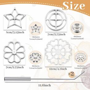 Características: Resistência e elegância: Feito de liga de alumínio, nosso ferro de biscoito roseta é projetado para suportar o uso repetitivo e também há alças de metal para uso seguro. Apesar de serem resistentes, o design desses moldes confere elegância a essas ferramentas, oferecendo não apenas função, mas também adicionando estética à sua cozinha. A escolha de presente ideal: nosso conjunto de moldes de roseta e alça de cozimento com seus moldes de design versátil é o presente ideal para seus entes queridos que amam assar. É adequado para assar à base de massa, serve como um presente atencioso. Especificações: Material: liga de alumínio, metal Cor principal: prata Tamanho: Cabo de cozimento: cerca de 9,84 polegadas/25 cm de comprimento Molde de cozimento pequeno em forma de flor: cerca de 2,76 polegadas/7 cm Molde de cozimento em forma de círculo: cerca de 2,76 polegadas/7 cm Molde de cozimento em forma de estrela de cinco pontas: cerca de 3,15 polegadas/8 cm Molde de cozimento em forma de flor grande: cerca de 4,72 30 cm. O pacote inclui: 2 x alças de cozimento 4 x moldes de cozimento (em 4 designs) Observações: Medição manual, permita pequenos erros no tamanho. - Experimente versatilidade no cozimento: o pacote inclui 2 alças de cozimento de cerca de 25 cm e 4 formas de bunuelos; se adora biscoitos em forma de flor ou o design clássico de círculo, pode experimentar vários formatos de molde; o conjunto também contém um molde de estrela distinto de cinco pontas e um molde de flor maior, adequado para assar à base de massa - Conforto e segurança garantidos: com alças de cozimento de cerca de 25 cm, pode usar confortavelmente os moldes de biscoito com segurança; as longas alças protetoras evitam o calor, garantindo que sua mão esteja segura de queimar enquanto você desfruta de seus projetos de cozimento DIY - Ferramentas de cozimento confiáveis: nosso conjunto de ferro roseta com alça é feito de liga de alumínio resistente, conhecida por sua longevidade; eles são cuidadosamente projetados, oferecem uma variedade de formas para necessidades versáteis de cozimento e são fáceis de usar; ideais para guloseimas caseiras e tradicionais, essas ferramentas são práticas para muitos padeiros apaixonados - Seu parceiro de cozimento DIY: seja você um iniciante ou um entusiasta de cozimento, nosso molde de bunuelos com alça garante que você aproveite o processo; os designs fáceis de mudar permitem que você experimente várias formas; Liberte sua criatividade e faça guloseimas tradicionais ou contemporâneas facilmente - Facilmente gerenciável: com nossos moldes de roseta para assar, é muito fácil criar belos waffles, bolos, chocolate, biscoitos e doces; esses moldes são laváveis à mão, garantindo que possam limpá-los facilmente após seus esforços de cozimento e manter sua longevidade