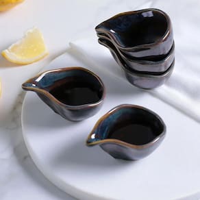 Elegância e autenticidade em cada peça Com design exclusivo, as molheiras apresentam variações naturais em formas, relevos e tonalidades, destacando sua originalidade. A tonalidade Oceano proporciona um toque elegante e contemporâneo, tornando este conjunto uma escolha perfeita para enriquecer qualquer mesa com charme e singularidade.