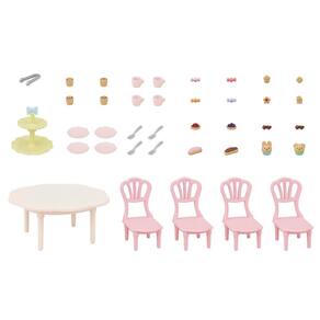 Conjunto de festa Sylvanian Families Ka-426 Furniture Sweets — Este conjunto de festa está repleto de doces coloridos e fofos como uma mesa linda — Inclui 30 acessórios fofos para doces — Além de motivos doces, existem 4 tipos de café com leite artístico — (C) EPOCH