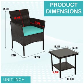 Especificações: Material: Vime, Fabricante: FDW, Característica Especial: À Prova de Intempéries, UPC: 195030073442, Peso do Item: 15 kg, Dimensões do Produto: 58.42 x 58.42 x 83.82 cm, Número do Modelo do Item: Conjunto de Móveis de Exterior 3 Peças, Cor: Marrom e Azul, Tamanho: 3 Peças, Dimensões do Item L x A x P: 58.42 x 58.42 x 83.82 cm, Instruções de Cuidado do Produto: Limpar com um pano seco Marca: Não Informado