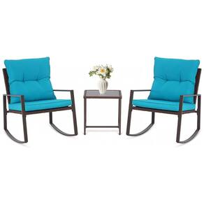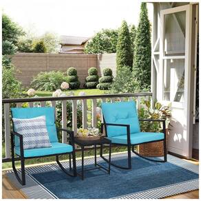Conjunto de Móveis de Vime Preto SUNCROWN para Área Externa: 3 Peças com Cadeiras de Balanço, Conjunto de Conversação com Mesa de Centro de - Azul Claro