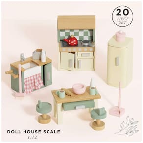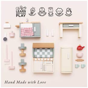 Conjunto de Brinquedo de Madeira Colorido e Educacional: Este conjunto de cozinha completo, com móveis e acessórios para casa de bonecas, é perfeito para o seu pequeno chef! Perfeitamente dimensionado para caber em qualquer uma das casas de bonecas de madeira Le Toy Van, proporciona horas de diversão e aprendizado.