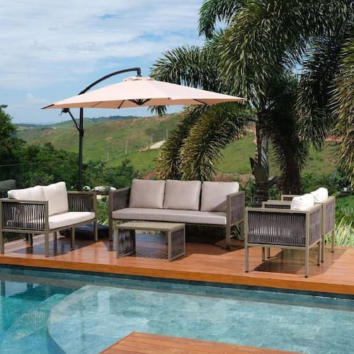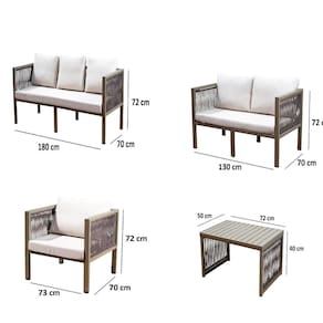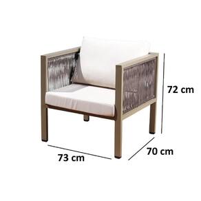 Design Robusto e Elegante: O Sofá Roma apresenta uma estrutura sólida e moderna em alumínio com pintura eletrostática, garantindo resistência à corrosão e às intempéries. Os braços e o encosto são detalhados com um trançado artesanal em corda náutica de alta qualidade, adicionando um toque de sofisticação e leveza ao design.
