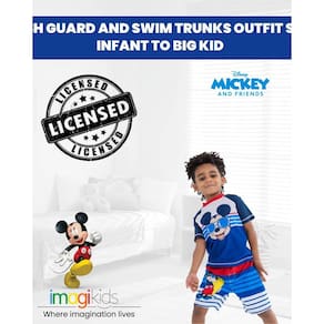 Prepare-se para um pouco de magia da Disney ao vestir o seu pequeno neste adorável conjunto de natação do Mickey Mouse. Este lindo conjunto inclui uma camisa de manga curta e shorts com arte colorida do amigo com orelhas de rato do seu filho parecendo legal em óculos de sol e pronto para surfar nas ondas. Feito de um material de secagem rápida e com FPS 50+, este conjunto de roupa de banho listrado vermelho, branco e azul é perfeito para aqueles dias ensolarados na praia. - Camiseta de natação de manga curta oficialmente licenciada do Mickey Mouse da Disney, para meninos, descolada e elegante, shorts de natação fofos e estilosos - Mangas raglã contrastantes; design incrível de impressão por sublimação; material FPS 50+ para proteção UVB e UVA e tempo de sol sem preocupações; fecho de cordão; cintura elástica para melhor ajuste; fecho de puxar - Camisa rash guard infantil elegante e short de banho com um ajuste confortável e design fácil de vestir; roupa de banho juvenil feita de material que protege seu filho do sol e é seguro para a pele - Camisa de banho infantil de secagem rápida e calção de banho com designs fofos e divertidos de personagem; um item essencial de verão durável que seu menino ativo não pode esperar para usar na água na praia ou na piscina - Perfeito para presente de aniversário, presente de feriado de Natal, brincadeiras ao ar livre, nadar na piscina e na praia e brincar ao sol, areia e água
