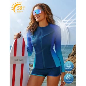 Conjunto de natação Rash Guard Kate Kasin feminino UPF 50+ Blue Gradient