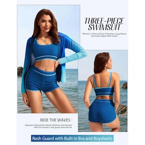 Kate Kasin 3 peças Rash Guard roupa de banho de manga comprida com zíper FPS 50+ proteção solar camisa de natação com boyshort de secagem rápida Fatos de banho femininos de 3 peças de qualidade premium: este traje de banho rash guard feminino inclui um top de natação de manga comprida, uma regata com um sutiã embutido e shorts de natação, proporcionando proteção completa e conforto para suas atividades aquáticas. A blusa de manga comprida é projetada com zíper frontal e gola redonda, enquanto a regata possui bainha elástica com gola em U e bojos removíveis para suporte adicional. O short de natação com cintura elástica garante um ajuste confortável e permite total amplitude de movimento. Excelente proteção solar: Feito de tecido de qualidade premium com proteção FPS 50+, este protetor de erupção cutânea para mulheres protege sua pele dos raios UV prejudiciais, tornando-o ideal para longas horas sob o sol. O material de secagem rápida mantém você seco e confortável, seja na praia ou na piscina. Conforto e estilo combinados: as alças de ombro ajustáveis e o material bem elástico garantem um ajuste perfeito para todos os tipos de corpo. Disponível em uma variedade de estampas florais e designs coloridos, este protetor rash guard para mulheres é elegante e funcional, o que o torna um item essencial para sua coleção de roupas de banho. Uso multiuso: se você estiver tomando banho, surfando ou desfrutando de outros esportes aquáticos, este maiô rashguard de 3 peças foi projetado para atender a todas as suas necessidades. O tecido de secagem rápida e respirável mantém você confortável durante suas atividades, enquanto o design moderno garante que você fique ótima em todos os momentos. Conteúdo da embalagem: 1 blusa de manga comprida, 1 regata e 1 short de natação - 3 peças Rash Guard femininas: nossos trajes de banho femininos incluem uma camisa de natação de manga comprida, uma regata com um sutiã removível embutido e um short de natação com controle de barriga de cintura alta, oferecendo proteção completa e conforto para suas atividades aquáticas - Fatos de banho de manga comprida para mulheres: as camisas rash guard de manga comprida são projetadas com zíper frontal e gola redonda, enquanto a regata possui bainha elástica com gola em U e almofadas removíveis no busto para maior suporte. Os shorts de cintura elástica garantem um ajuste confortável e permitem total amplitude de movimento - Excelente proteção solar UV: Feito de tecido premium com proteção FPS 50+, este maiô de manga comprida para mulheres protege sua pele contra erupções cutâneas, abrasões e raios UV prejudiciais, tornando-o ideal para longas horas sob o sol sem se preocupar com queimaduras solares. O material de secagem rápida mantém você seco e confortável durante suas atividades, enquanto o design moderno garante que você fique ótima em todos os momentos - Conforto encontra o estilo: as alças de ombro ajustáveis e o material bem elástico garantem um ajuste perfeito para todos os tipos de corpo. Disponível em uma variedade de estampas florais vívidas e designs coloridos, este protetor de rash guard para mulheres é elegante e funcional, o que o torna um item essencial para sua coleção de roupas de banho - Várias ocasiões: este maiô feminino de 3 peças permite que você misture e combine como quiser, oferecendo infinitas opções de estilo e atendendo a todas as suas necessidades. É perfeito para natação, banho, surfe, passeios na praia, mergulho, caiaque, snorkeling, wakeboard, golfe, rafting, paddle boarding, hidroginástica, aulas de ginástica, diversão aquática casual, ioga aquática, corrida, ciclismo, pesca ou outros esportes ao ar livre