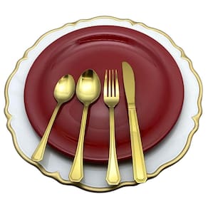 1 faqueiro dourado versace 16 pecas fineza 4 colheres de sobremesa, 4 colheres de mesa, 4 facas de mesa, 4 garfos de mesa
