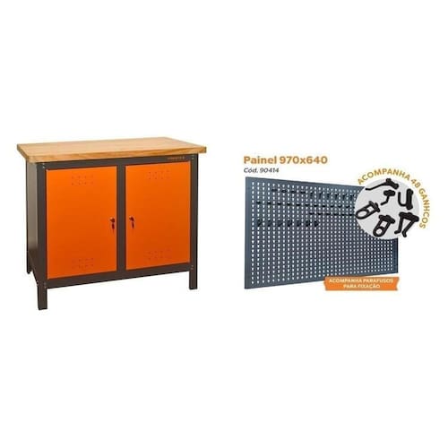 1x Bancada para Ferramentas Profissional Fechada 110cm Largura: 110 cm Altura: 92 cm Peso: 40,743 kg Necessita Montagem: Sim