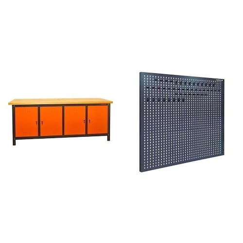 "Maximize sua eficiência com o Conjunto de Organização Profissional Presto, que inclui uma Bancada e Painel para Ferramentas em Aço. Projetado para atender às necessidades exigentes de qualquer ambiente de trabalho, este conjunto oferece uma solução completa para manter suas ferramentas organizadas e acessíveis. Transforme sua área de trabalho em um espaço organizado e produtivo com o Conjunto de Organização Profissional Presto. Garanta que suas ferramentas estejam sempre ao seu alcance, permitindo que você se concentre no que realmente importa: realizar o seu trabalho com excelência." Altura do Conjunto: 92 cm Ambiente: null Ambiente Principal: Área de Serviço Cor: Preto Cor Predominante: Preto Informação Complementar: 1x Painel para Ferramentas em aço 970 x 940 mm com 48 Ganchos Plásticos Largura: 97 Peso: 4.375 Necessita Montagem: Sim