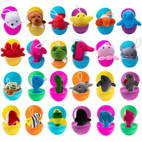 - Supervalor com 24 ovos de Páscoa pré-preenchidos com 24 mini animais marinhos fofos diferentes de pelúcia com cores diversas vívidas. Nenhum é duplicado! Os ovos medem 7,6 cm.